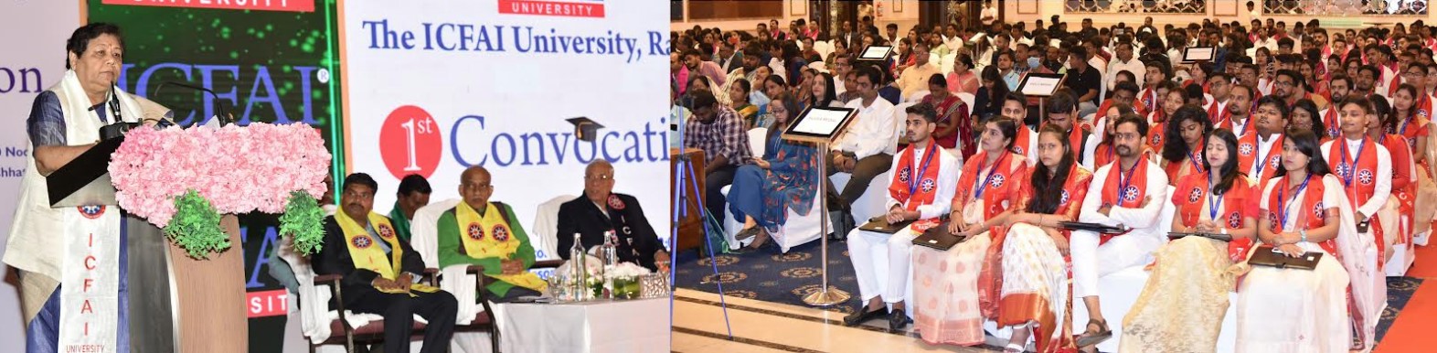 आज राज्यपाल सुश्री अनुसुईया उइके नवा रायपुर स्थित निजी संस्थान में आयोजित आई.सी.एफ.ए.आई. विश्वविद्यालय, रायपुर के प्रथम दीक्षांत समारोह में शामिल हुईं। इस अवसर राज्यपाल सुश्री उइके ने विश्वविद्यालय के 23 स्वर्ण एवं 19 रजत पदक सहित 105 विद्यार्थियों को उपाधि वितरण की एवं उन्हें बधाई एवं शुभकामनाएं दीं। साथ ही उन्होंने इस उपलब्धि के लिए सभी अभिभावकों तथा  संस्थान के शिक्षकों को भी बधाई दीं। इस अवसर पर राज्यपाल ने विद्यार्थियों से सिर्फ रोजगार की चाह न रखकर ,रोजगार दाता बनकर देश के मैन्यफैक्चरिंग सेक्टर से जुड़ने की सलाह दी। साथ ही उन्होंने विद्यार्थियों से अनुसंधान से जुड़कर देश के विकास की संभावनाओं को तलाशने को भी कहा। इसके अलावा राज्यपाल ने सभा को संबोधित करते हुए सभी शिक्षा संस्थानों को राष्ट्रीय शिक्षा नीति 2020 के अनुुरूप बेहतर शिक्षा की व्यवस्था करने को भी कहा।