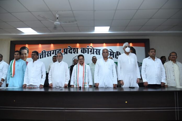 छत्तीसगढ़ प्रदेश निर्वाचन अधिकारी हुसैन दलवाई की अध्यक्षता में छत्तीसगढ़ प्रभारी पी.एल. पुनिया, प्रभारी सचिव डॉ. चंदन यादव की उपस्थिति में कांग्रेस के नवनिर्वाचित प्रदेश प्रतिनिधियों की बैठक प्रदेश मुख्यालय राजीव भवन में आयोजित किया गया। बैठक में दो महत्वपूर्ण प्रस्ताव पारित हुये। पहला प्रस्ताव मुख्यमंत्री भूपेश बघेल ने रखा जिसमें कहा गया प्रदेश के पदाधिकारियों एवं कांग्रेसजनों की भावनानुरुप भारतीय राष्ट्रीय कांग्रेस के अध्यक्ष राहुल गांधी को बनाये जाने हेतु सर्वसम्मति से प्रस्ताव रखता हूं। इस प्रस्ताव का समर्थन प्रदेश कांग्रेस अध्यक्ष मोहन मरकाम, वरिष्ठ नेता डॉ. चरणदास महंत, मंत्री टी.एस. सिंहदेव, मंत्री डॉ. शिवकुमार डहरिया, मंत्री डॉ. प्रेमसाय सिंह ने किया।