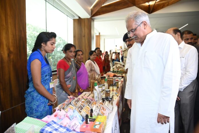 गौरतलब है कि मुख्यमंत्री भूपेश बघेल आज राजधानी कि न्यू सर्किट हाऊस में कलेक्टर एसपी कान्फ्रेस के दौरान वाहन गौठान एवं रीपा रूरल इंण्डस्ट्रीयल पार्क के स्वयं स्वः सहायता समूह के द्वारा लगाए स्टॉल का अवलोकन करने पहुंचे। वहाँ उन्होंने समूह द्वारा प्रदर्शित उत्पाद गोबर से बने पेंट कुकीस, अचार तथा बाँस से बने घरेलू उपयोग की वस्तुएं कलाकृति को देखा तथा इस संबंध में जानकारी ली। मुख्यमंत्री ने महिलाओं द्वारा निर्मित किये गए उत्पादों की सराहना करते हुए अपर मुख्य सचिव को कहा कि, राज्य की सभी शासकीय स्कूलों में पोताई कार्य में गौठान या रूरल इंण्डस्ट्रीयल पार्क में निर्मित गोबर से बने पेंट का उपयोग करने के निर्देश जारी करें।
