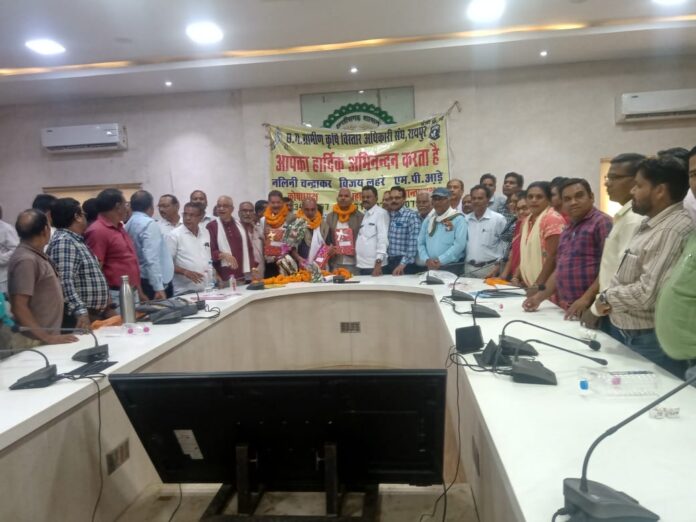 संध के प्रांतीय अध्यक्ष एम.पी.आड़े एवं तृतीय वर्ग कर्मचारी संध प्रांतीय अध्यक्ष विजय कुमार झा ने बताया है कि ग्रामीण कृषि विस्तार अधिकारी जो पूर्व में ग्राम सहायक के पद पर नियुक्त होकर पदोन्नति उपरांत उक्त पदों पर पदोन्नति प्राप्त करते है। किंतु संध के वरिष्ठ व सम्मानीय सदस्य आर.के.वर्मा, श्री निर्मल शर्मा, एवं आर.के.साहू उसी पद पर नियुक्त होकर उसी पद पर सेवानिवृत्त हो रहे है। संध ने उनका सम्मान किया। इस अवसर पर कार्यक्रम के मुख्य अतिथी छग.कर्मचारी अधिकारी फेडरेशन के प्रमुख प्रवक्ता विजय कुमार झा, संध के कार्यकारी प्रांतीय अध्यक्ष अजय तिवारी, जी.एस.यादव, प्रांताध्यक्ष वरिष्ठ कृषि विकास अधिकारी संध, कुबेर सिंह प्रांताध्यक्ष कृषि विकास अधिकारी संध, कृषि सर्वेयर संध के प्रांताध्यक्ष एम.एल.देवॉगन, विजय लहरे महामंत्री, अशोक शर्मा, आर.के.श्रीवास्तव वरिष्ठ सदस्य, सहित सैकड़ों पदाधिकारी दूरस्थ बस्तर, कोंटा, सरगुजा, अंबिकापुर, रायगढ़ जशपुर के पदाधिरियों व महिला प्रतिनिधियों ने भाग लिया। तीनों सेवानिवृत्त साथियों का सम्मान समारोह आयोजित कर जीवनपर्यन्त संगठन से जुड़े रहने की अपील की गई। केन्द्रीय कर्मचारियों के समान मंहगाई भत्ता न मिलने, देय तिथी में भेंदभाव करने से नाराज कृषि विभाग के उक्त अधिकारियों ने कमल वर्मा के नेतृत्व में फेडरेशन द्वारा जो भी आदोलन किया जावेगा, उसमें सहभागिता निभाने का संकल्प पारित किया गया। तीनों सेवानिवृत्त कर्मचारियों ने सभी का आभार व्यक्त करते हुए अपना आर्शीवाद प्रगट किया।