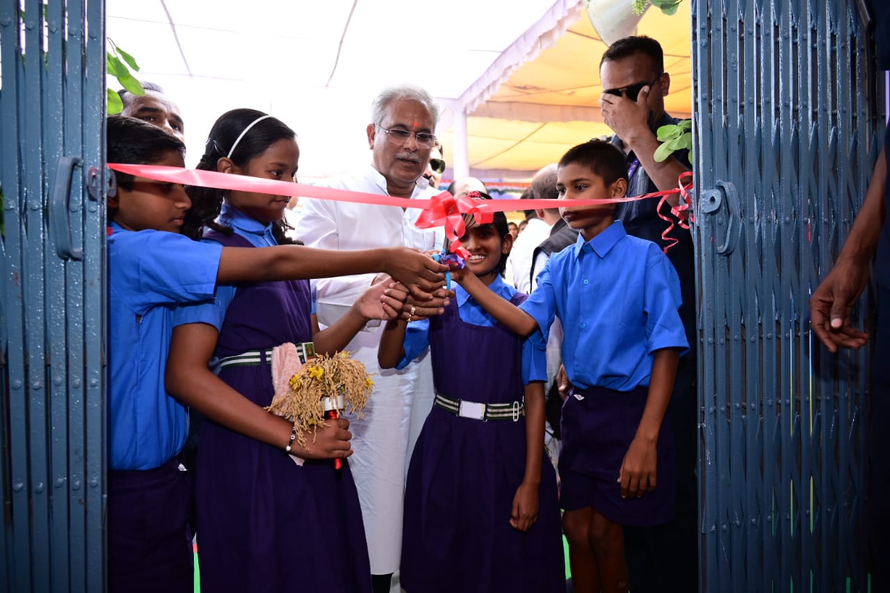मुख्यमंत्री ने स्कूली बच्चों से फीता कटवाकर करवाया शाला भवन का उद्घाटन