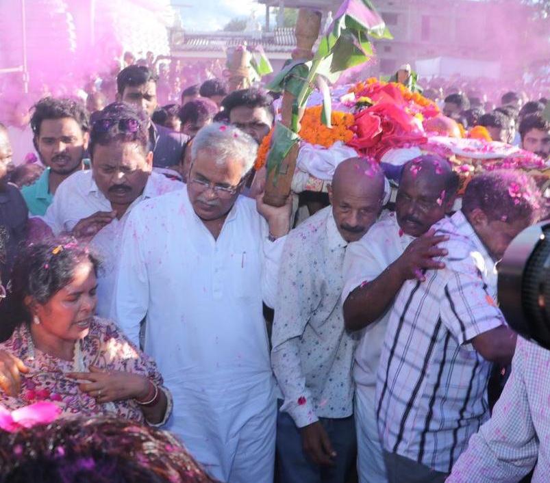 छत्तीसगढ़ विधानसभा के उपाध्यक्ष स्वर्गीय श्री मनोज सिंह मण्डावी को विकासखण्ड कांकेर अंतर्गत उनके गृह ग्राम नथिया-नवागांव में आज शाम राजकीय सम्मान के साथ अंतिम विदाई दी गई। दुख के इस घड़ी में मुख्यमंत्री श्री बघेल आज उनके गृह ग्राम पहुंचकर स्वर्गीय श्री मण्डावी के पार्थिव शरीर पर पुष्प चक्र अर्पित कर श्रद्धांजलि दी। उन्होंने इस दौरान विधानसभा उपाध्यक्ष स्वर्गीय श्री मनोज सिंह मण्डावी के शोक संतप्त परिवारजनों के प्रति संवेदना प्रकट करते हुए दिवंगत आत्मा की शांति के लिए ईश्वर से प्रार्थना की।