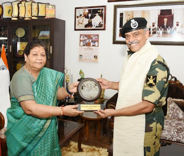 राज्यपाल सुश्री अनुसुईया उइके से आज राजभवन में सीमा सुरक्षा बल के नवपदस्थ अतिरिक्त महानिदेशक आशीष गुप्ता ने सौजन्य मुलाकात की। राज्यपाल को गुप्ता ने प्रदेश में सीमा सुरक्षा बल के कार्यों के बारे में जानकारी दी। इस दौरान राज्यपाल और गुप्ता ने प्रदेश में नक्सल गतिविधियों से जुड़े विभिन्न विषयों पर चर्चा की और क्षेत्र में शांति स्थापित करने के लिए बी.एस.एफ. के प्रयास और भूमिका के बारे में बताया। राज्यपाल ने उन्हें शुभकामनाएं दीं और शाल और स्मृति चिन्ह देकर सम्मानित किया।