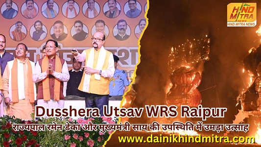 Dusshera Utsav WRS Raipur : गांधी जयंती का उल्लेख करते हुए राज्यपाल ने कहा कि दशहरा हमें बुराई का अंत करने की शिक्षा देता है और गांधी जयंती हमें सत्य और अहिंसा के मार्ग पर चलने की प्रेरणा देती है। जब ये दोनों विचार साथ आते हैं तो समाज में प्रेम, भाईचारा और शांति कायम होती है।