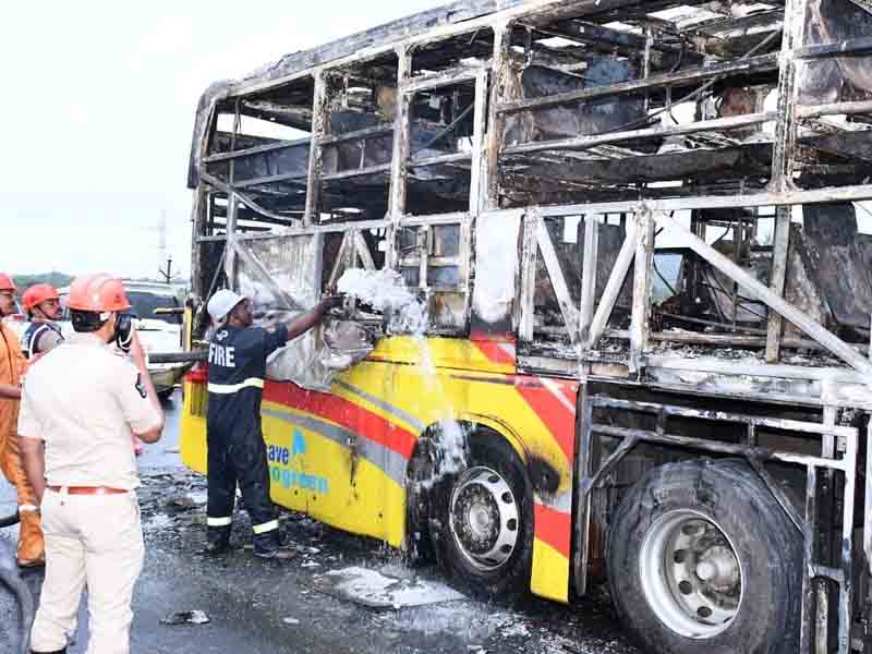 कुरनूल, 24 अक्टूबर । kurnool bus fire : आंध्र प्रदेश के कुरनूल जिले में एक बस में आग लगने से कई लोगों की मौत हो गई है। यह हादसा कल्लूर मंडल में चिन्नाटेकुर के पास हैदराबाद-बेंगलुरू हाईवे पर हुआ। यह बस बेंगलुरु से हैदराबाद जा रही थी, तभी अचानक आग की लपटें उठने लगीं। कुछ देर में ही पूरी बस जलकर राख हो गई।