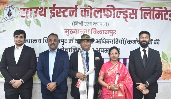 विभिन्न विभागाध्यक्ष, श्रम संघ प्रतिनिधि, सुरक्षा विभाग के कर्मियों, अधिकारी और कर्मचारी की उपस्थिति में मुख्यालय बिलासपुर स्थित सीएमडी कक्ष में शाल, श्रीफल, पुष्पहार से सम्मानित कर समस्त भुगतान का चेक प्रदान कर भावभीनी विदाई दी गयी।