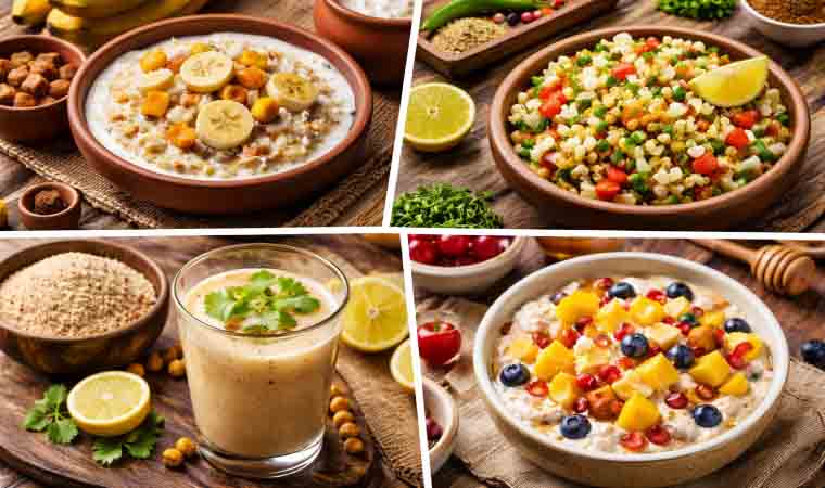 ओट्स दही बाउल – ओट्स में दही और थोड़े फल या ड्राई फ्रूट्स मिलाकर पौष्टिक बाउल बनाया जाता है।